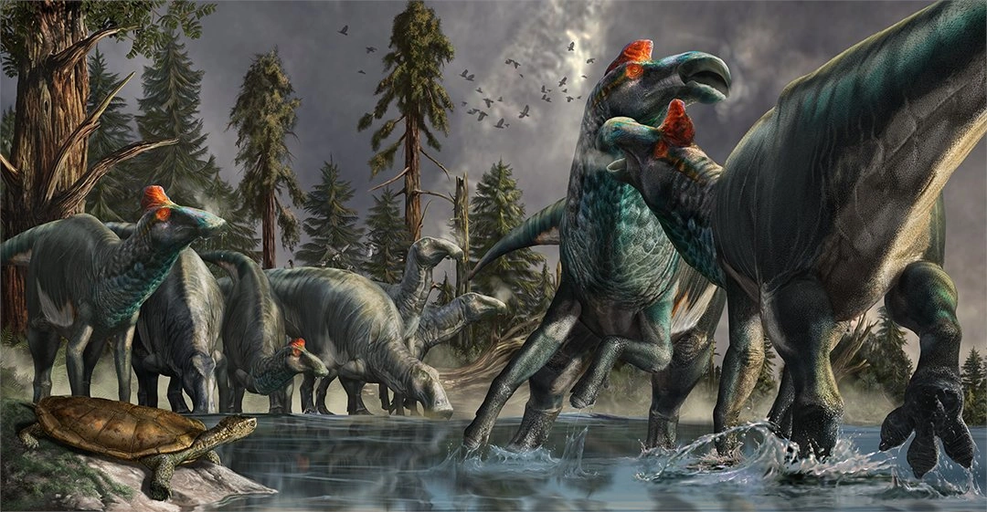 Restoration of Edmontosaurus painted by Todd Marshall